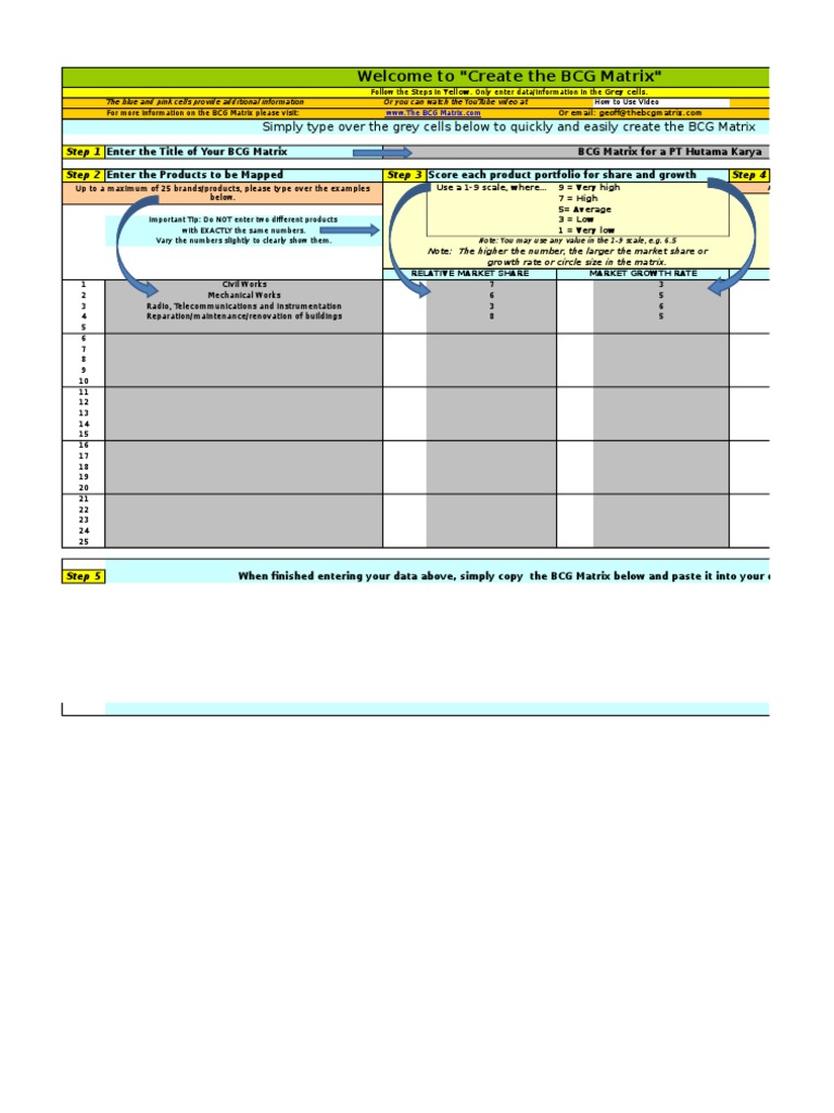 BCG Strategic Analysis - BCG Matrix The BCG Growth-Share Matrix is based on two dimensional variables: relative market share and market growth. They often are pointers to healthiness of a business (Kotler 2003; McDonald 2003). In other words, products with greater market share or within a fast growing market are expected to wield relatively greater profit margins. › fci-solved-paperFCI Solved Paper - iExamworld Online Learning Portal May 26, 2017 · 41. 15 persons complete a job in 3 days. How many days will 10 persons take to complete the same job? 42. The owner of an electronics shop charges his customer 25% more than the cost price. If a customer paid Rs. 11,500 for a television set, then what was the cost price of the television set? (1) Rs. 9,200-Answer (2) Rs. 7,200 (3) Rs. 8,600 (4 ... Boston Consulting Group (BCG) Growth-Share Matrix - SM Insight Although BCG analysis has lost its importance due to many limitations, it can still be a useful tool if performed by following these steps: Step 1. Choose the unit Step 2. Define the market Step 3. Calculate relative market share Step 4. Find out market growth rate Step 5. Draw the circles on a matrix Step 1. Choose the unit.