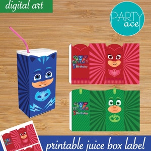 PJ Masks Birthday Party Printable Juice Box Labels | Mask party, Pj mask, Pj masks printable