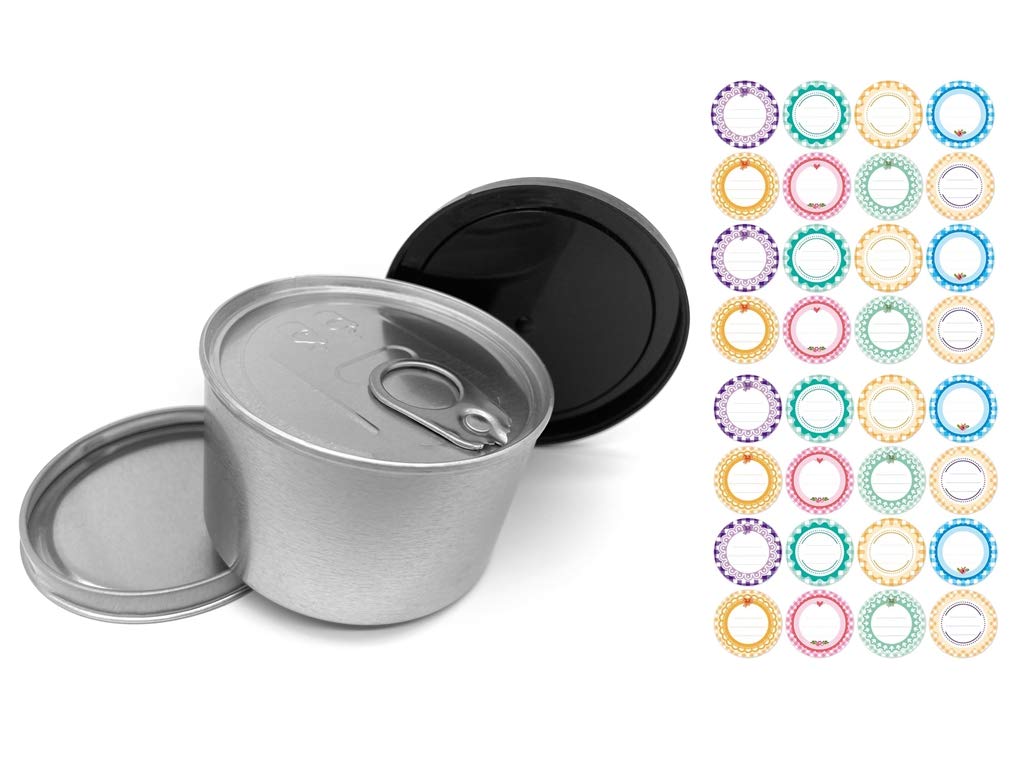 40 Sets Label stickers for 3.5g Tin Cans with Lid Press-In Self-seal ... Self-Seal Cali Tin Can, Pressitin Cans with Ring Lid and Label, Side Stickers, Tin Tuna Can - No Tools Needed - 100ml/3.5g (20 Sets) 4.7 out of 5 stars 8 1 offer from $80.83