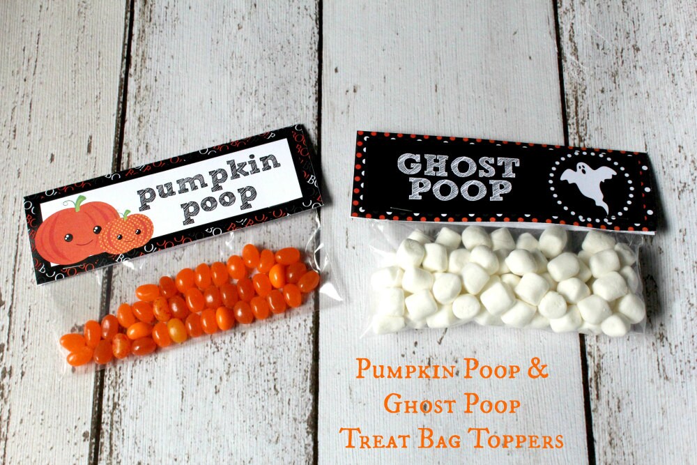Pumpkin Poop + 4 Halloween Treat Bag Toppers - Somewhat Simple Directions First, print off and cut out our adorable Halloween treat bag toppers. Tape a clothes pin to the back of each character. Fill the bags with coordinating treats. Attach the clothespin, and you're done! Pumpkin Poop Labels