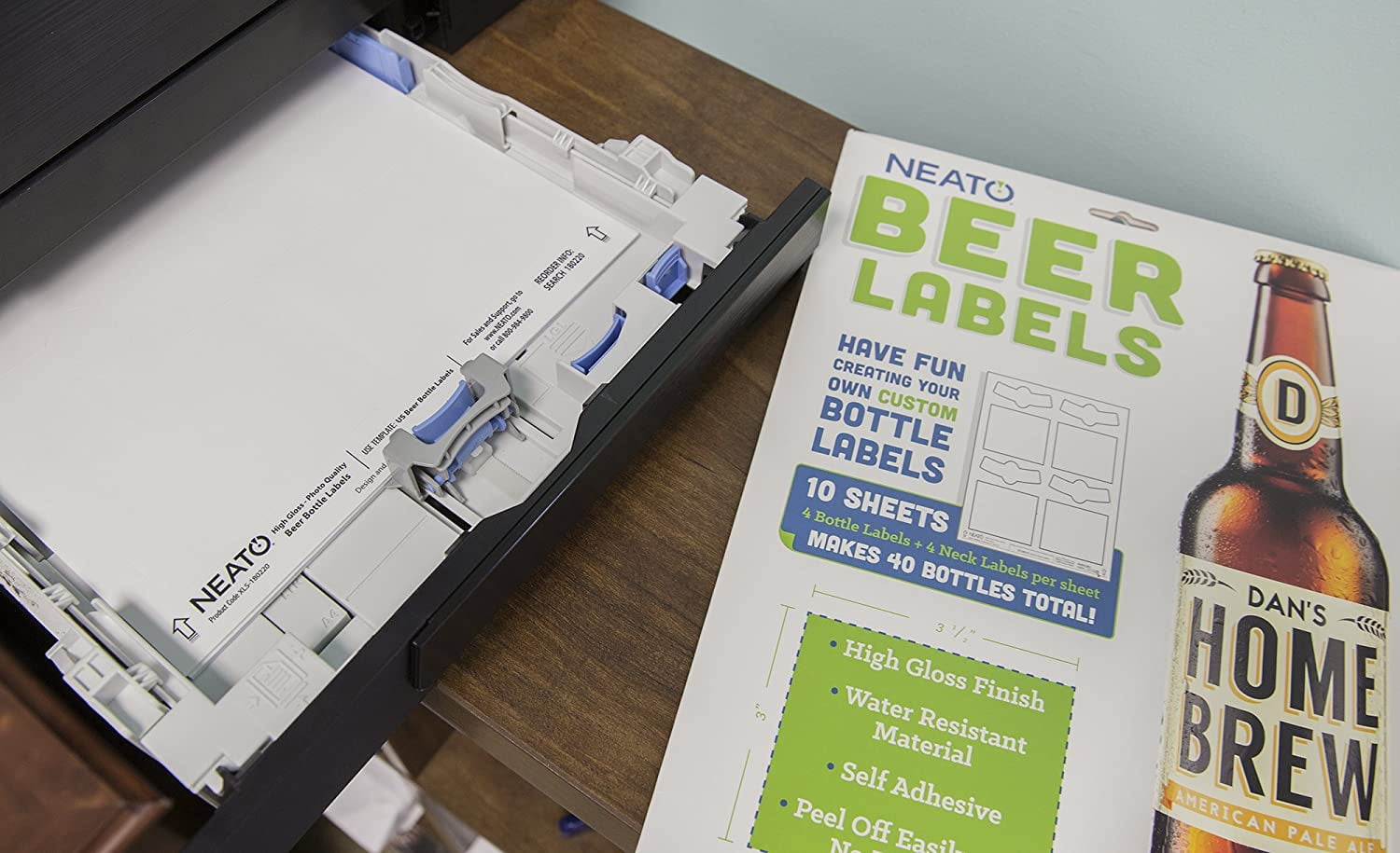 Neato Custom Beer Bottle Labels - Waterproof, Printable, Super Glossy, Vinyl, Tear Free Labels for Inkjet & Laser Printers, 10 Sheets - 40 Total ...